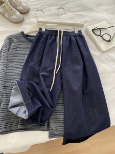 显瘦阔腿九分牛仔裤女早秋款莱赛尔天丝棉拼接抽绳萝卜裤奶奶裤