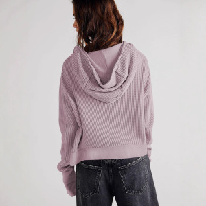 亚马逊夹克拼接卫衣欧美女装带帽卫衣慵懒风拉链连帽衫短款针织衫