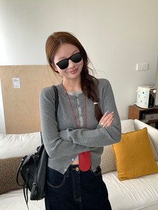 im向 氧气多巴胺 撞色假两件针织衫上衣女秋季修身外搭毛衣