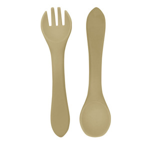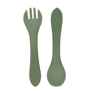 婴儿辅食硅胶勺叉长柄吃饭训练厂家直供柔软不伤牙米糊勺跨境热销