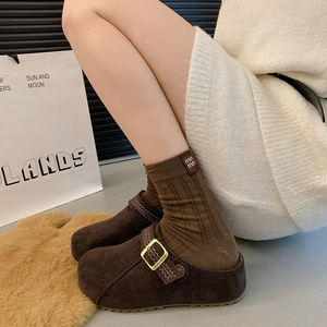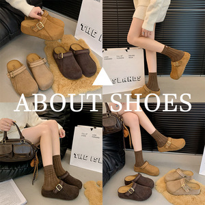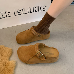 复古勃肯包头半拖女外穿2025秋季新款舒适懒人鞋厚底百搭拖鞋纯色