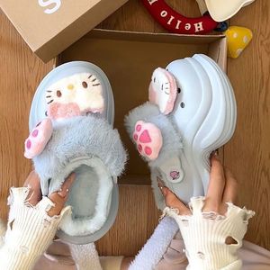 可爱凯蒂猫厚底毛毛鞋女2025秋冬新款少女心猫爪加绒保暖包头拖鞋