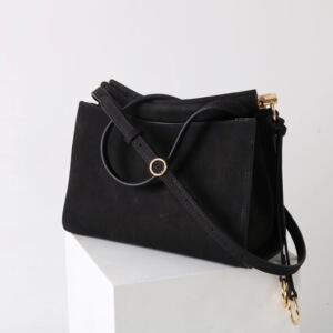 2025新款头层牛皮麂皮腋下复古法式法棍夹子包小众设计极简风通勤