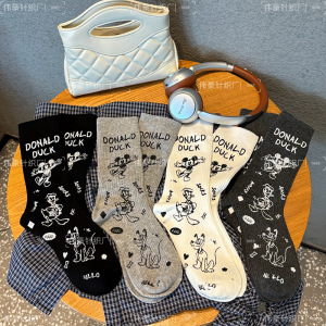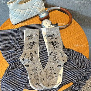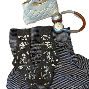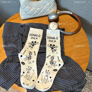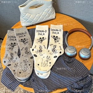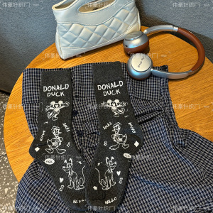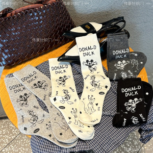 新款彩色喷漆米老鼠简约潮女袜日系卡通西高地狗饰品中筒袜堆堆袜
