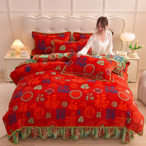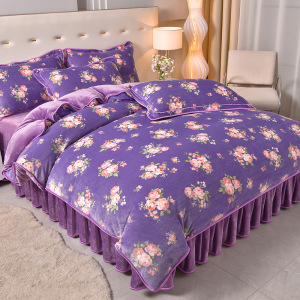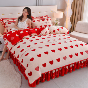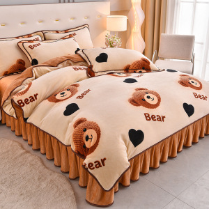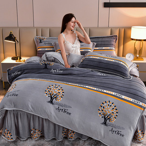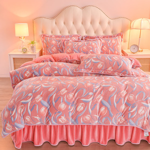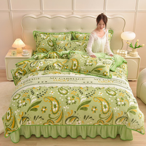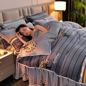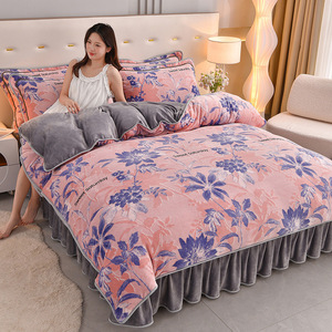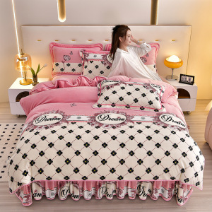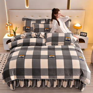 2025新款牛奶绒四件套双面加绒保暖床单被罩床裙款家用三件套批发