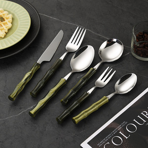 高颜值绿色亚克力竹节304不锈钢刀叉勺猫眼黄亚克力餐具酒店刀
