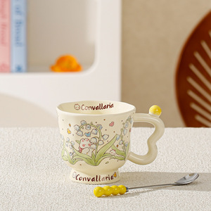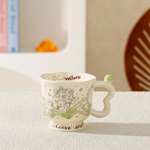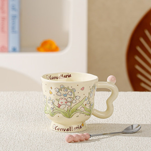 蓝玲花小兔子高脚杯马克陶瓷水杯子盖勺可爱礼盒生日创意伴手礼品