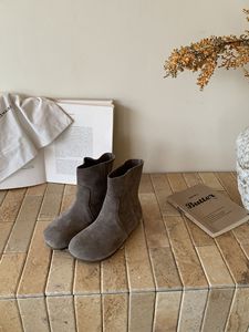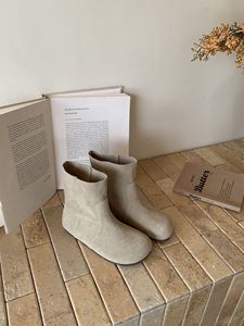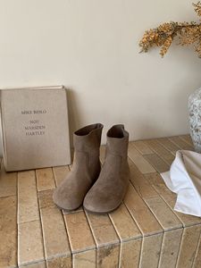 2025秋冬新款简约圆头套筒短靴平底百搭及裸靴马丁靴