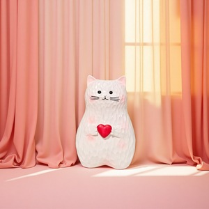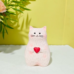 跨境粉红爱心猫树脂摆件多功能室内花盆花瓶粉红猫咪家居装饰创意