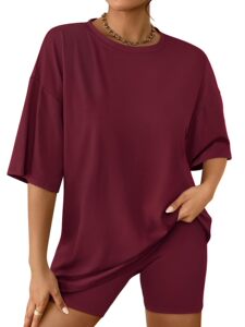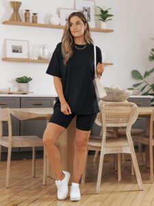 跨境女式夏季2025两件套休闲套装配套服装纯色T恤骑行短裤时尚