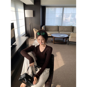 黛嘉雯复古长袖羊毛打底衫女秋季设计感百搭修身显瘦内搭针织上衣