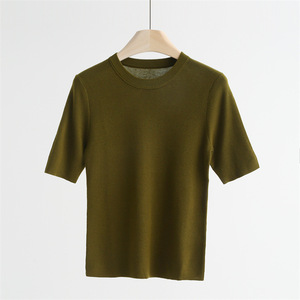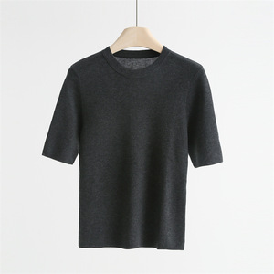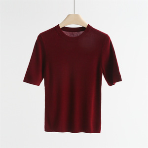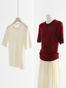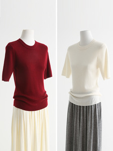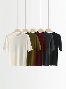 秋通勤百搭圆领中袖针织衫羊毛混纺简约打底衫纯色上衣毛衣35330