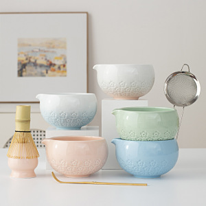 德化日式樱花陶瓷茶筅立抹茶碗跨境专供百本立抹茶刷点茶茶具套装
