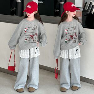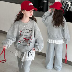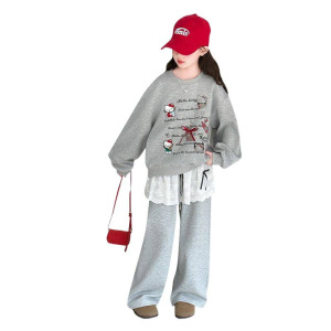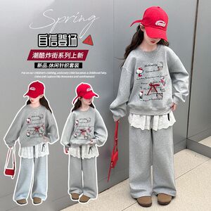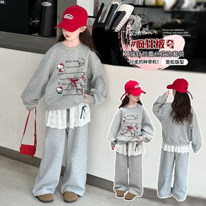 女童套装2025春季新款儿童洋气卡通猫咪韩版小女孩韩版卫衣两件套
