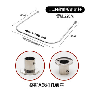跨境打孔U型伸缩杆浴帘杆隔断卫生间挡水条干湿分离不锈钢可伸缩
