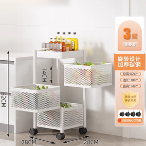 厨房置物架落地多层蔬菜篮收纳移动小推车家用旋转免安装储物架子