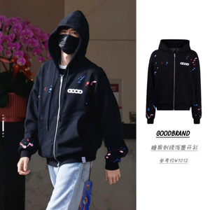 GOODBRAND老白同款 25FW糖果泼墨刺绣连帽开衫卫衣 男女同款