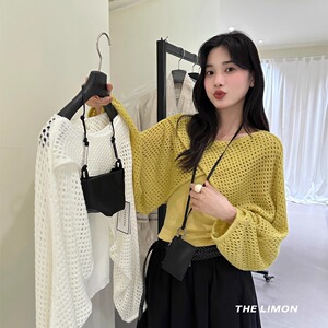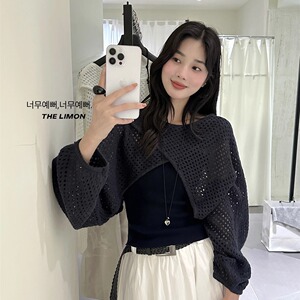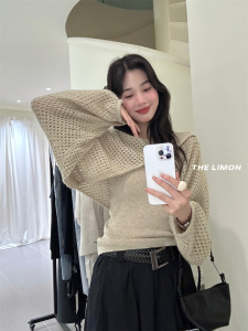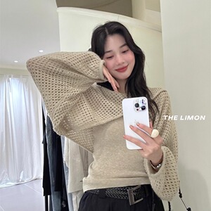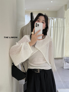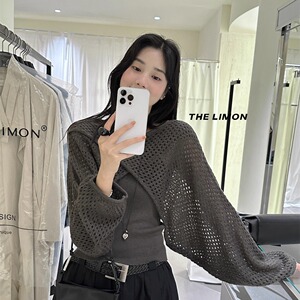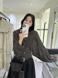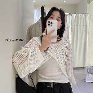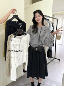 THE LIMON柠檬绿茶2025秋季时尚温柔交叉设计感镂空罩衫+背心套装