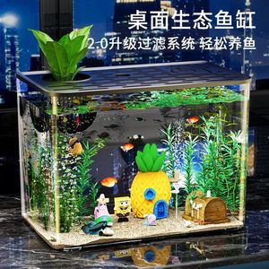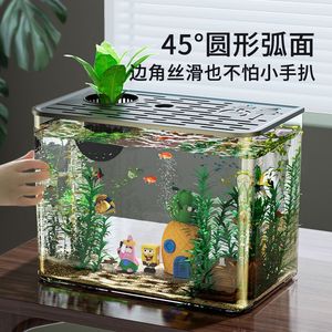 鱼缸水族箱客厅桌面造景室内落地式网红一体成型缸透明办公室家用