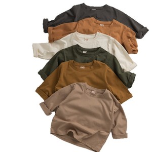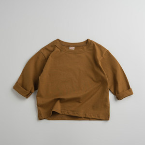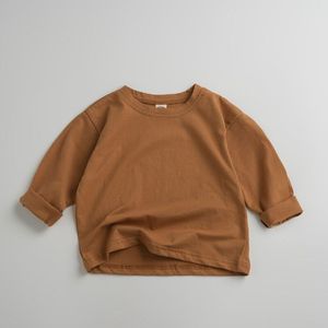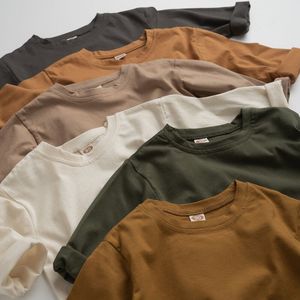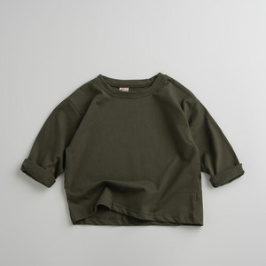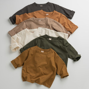 yyds咔叽色系闭眼搭韩版儿童春秋新款棉T恤洋气长袖男女打底衫潮t
