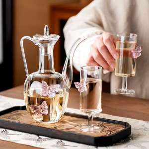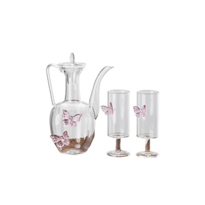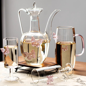 法式复古浮雕蝴蝶玻璃杯高硼硅玻璃壶煮茶壶家用泡茶高脚杯套组