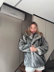 亚马逊俄罗斯ozon欧美跨境皮草大衣秋冬仿毛皮染尖狐狸毛翻领外套