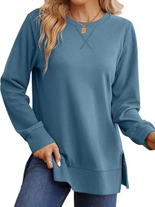 2025年欧美跨境亚马逊速卖通纯色圆领上衣秋冬女装套头卫衣