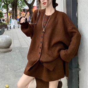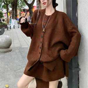 针织套装韩系宽松休闲2025秋冬新款百搭简约优质短裙毛衣两件套女