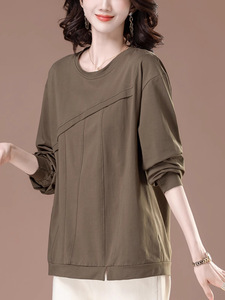 加肥加大码纯棉t恤女长袖春秋薄款中年妈妈宽松遮肚子显瘦打底衫