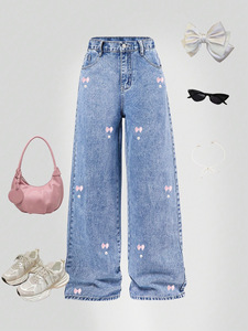 外贸原创设计复古水洗女直筒阔腿裤宽松高腰显瘦百搭小众牛仔裤