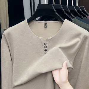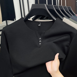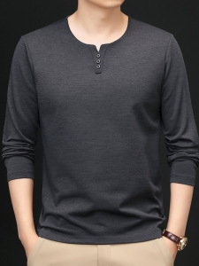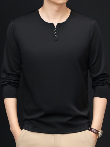春秋季男士长袖鸡心领T恤宽松休闲上衣中年爸爸装时尚打底衫批发