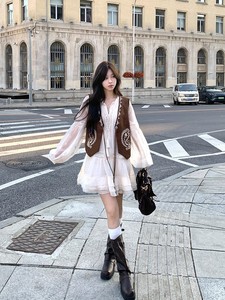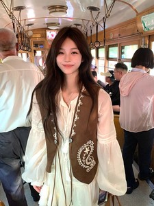 Adan麂皮绒立体刺绣马甲秋季美拉德复古百搭设计感背心无袖上衣女