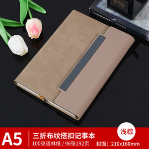 A5三折布纹搭扣浅棕