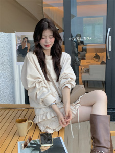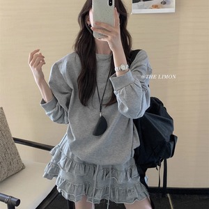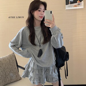 THE LIMON柠檬绿茶2025秋季套装慵懒风长袖卫衣+蛋糕半身裙两件套