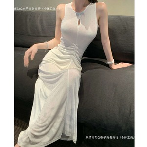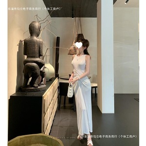 纯欲风薄款修身小众设计感夏日连衣裙子女新款长裙图片色拼接中裙