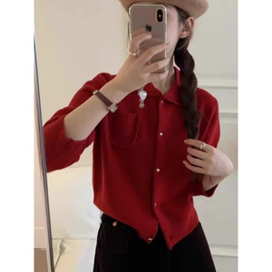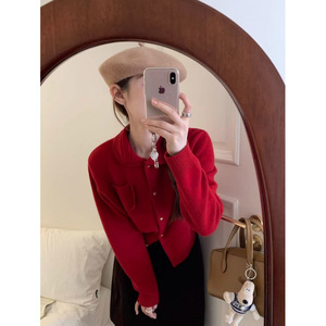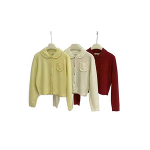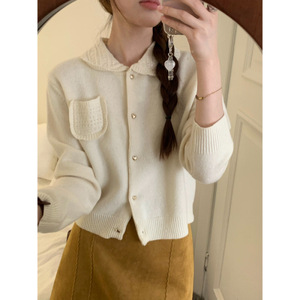 omelet蛋卷 秋冬装新款娃娃领领爱心扣短款显瘦上衣毛衣