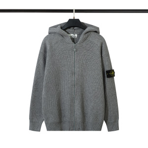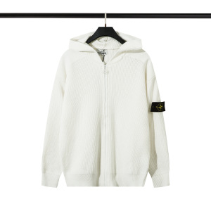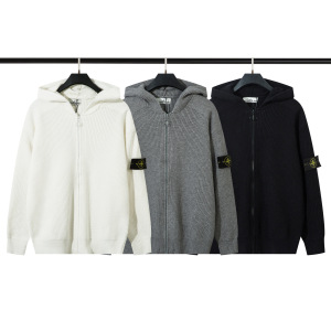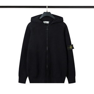 跨境STONE石头拉链开胸立领徽章机能连帽针织毛衣男女岛ius秋冬