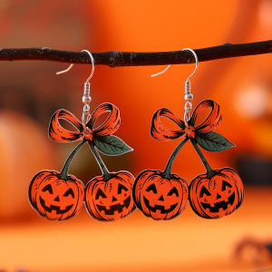 跨境新款万圣节哥特风蝴蝶结南瓜叶樱桃搞怪吊坠耳环 亚克力耳饰