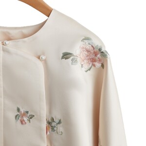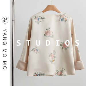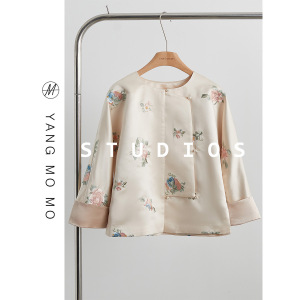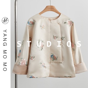 新中式中国风圆领不规则斜襟醋酸感提花外套2025春款女装气质上衣