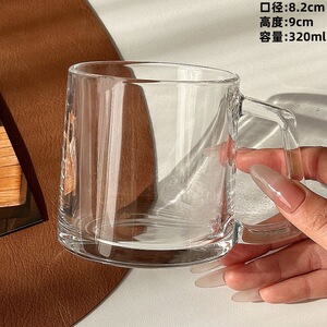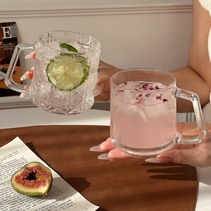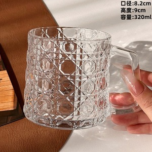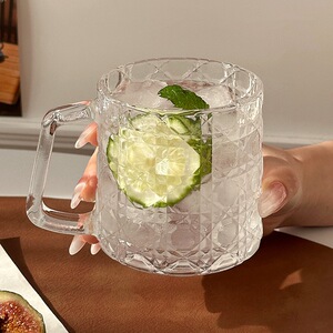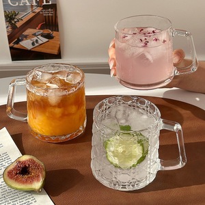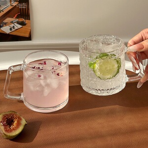 刻花带把玻璃杯家用创意高颜值女生透明喝水饮料冰咖啡杯马克杯子