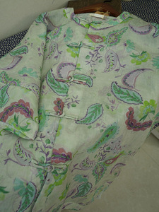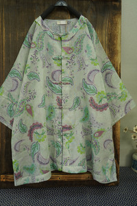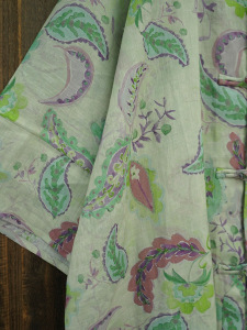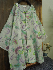 2025夏季新款 文艺复古苎麻印花单层圆领手工盘扣宽松开衫389047