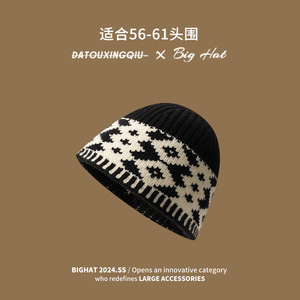 复古菱形格针织毛线帽女秋冬季潮韩版百搭显脸小保暖防寒时尚冷帽