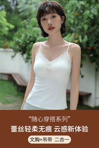 粉底液蕾丝吊带背心式女外穿带胸垫秋冬内搭无痕大码加长美背抹胸