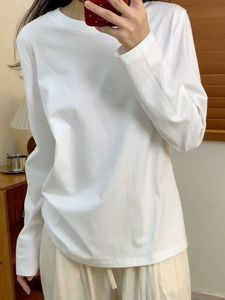 正肩纯棉长袖T恤女春秋内搭纯色打底衫宽松百搭上衣简约休闲体恤