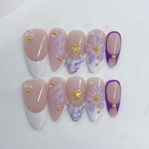 跨境欧美款雕花杏仁甲夏日甜美温柔气质手工穿戴甲成品nails批发
