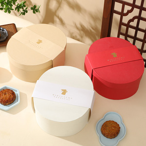 红色椭圆形礼盒+中秋腰封;小号19*13.5*7.5cm