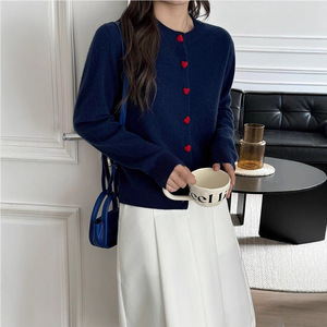 2025春秋新款韩系甜美减龄爱心扣外套针织开衫女圆领百搭长袖毛衣
