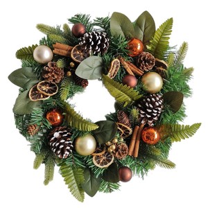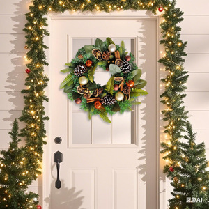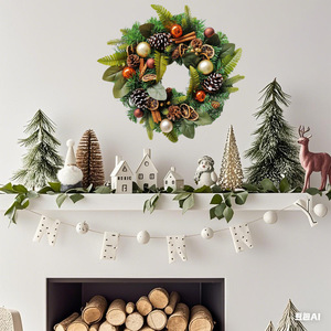 圣诞节花环挂件手工制作松果绿叶松针花环节日派对家庭装饰