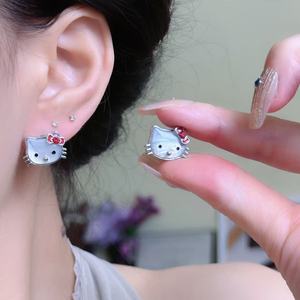 天然贝母KT猫耳钉项链小众设计高级感轻奢童趣可爱少女耳环锁骨链