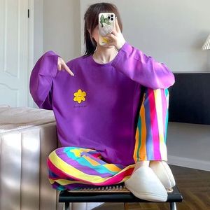 设计感小众露肩睡衣女春秋冬季女士长袖长裤米奇阔腿裤家居服套装